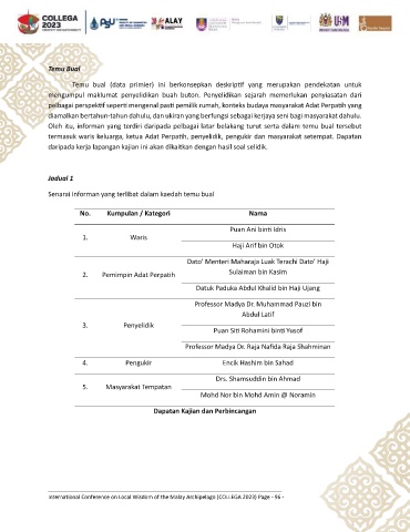 Senarai informan yang terlibat dalam kaedah temu bual