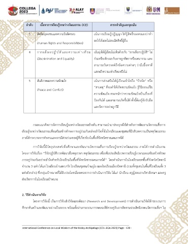 ลำดับ เนื้อหาการเรียนรู้ระหวางวัฒนธรรม (ICE) สาระสำคัญและจุดเน้น