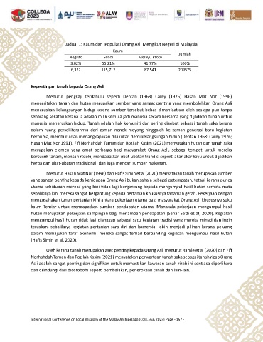 Jadual 1: Kaum dan Populasi Orang Asli Mengikut Negeri di Malaysia