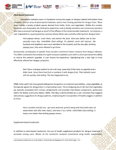 In addition to plant-based treatments, the use of health supplement products for dengue treatment is