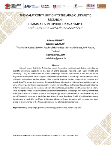 Keywords: Malay archipelago; grammar; morphology; Wan Ahmad, Arabic linguistics