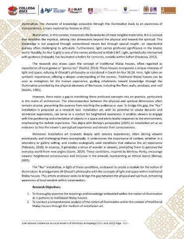 illumination. It amalgamates Al-Ghazali’s philosophy with the concepts of light and space within traditional