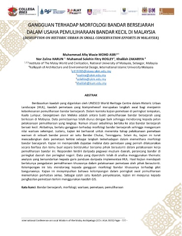 Kata kunci: Bandar bersejarah; morfologi; warisan; pemetaan; pemuliharaan