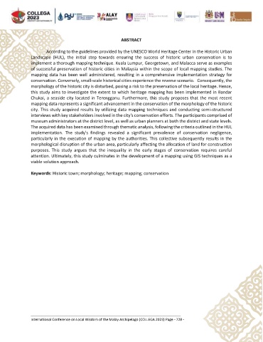 of successful preservation of historic cities in Malaysia within the scope of local mapping studies. The