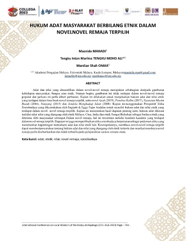 terdapat dalam novel- novel remaja terpilih. Kajian ini menemukan hasil dapatan penting iaitu, hukum adat dikesan