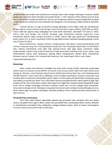 dengan agama. Hukum adat bersinegri dengan hukum formal seperti agama (Aditya, 2019; Marwa, 2021).