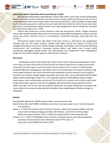 yang berpaksikan hukum adat terdapat dalam novel-novel remaja (Thury, 2022). Karakter-karakter dalam