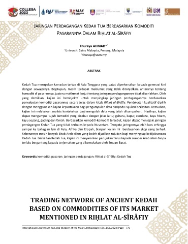 Keywords: komoditi; pasaran; jaringan perdagangan; Riḥlat al-Sīrāfiy; Kedah Tua