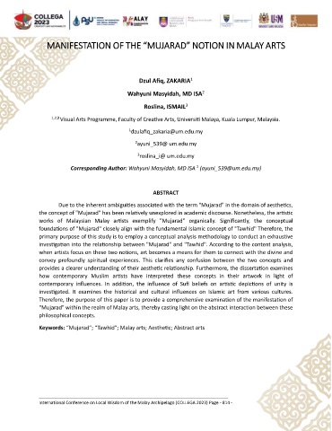 Keywords: “Mujarad”; “Tawhid”; Malay arts; Aesthetic; Abstract arts