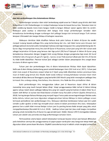 Keilmuan di alam Melayu berkembang pesat setelah kedatangan Islam (Siti Izzah et.al, 2021). Tulisan jawi