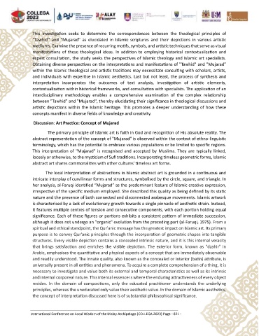 her analysis, al-Faruqi identified “Mujarad” as the predominant feature of Islamic creative expression,