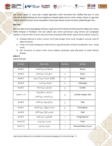 jawi (Rujuk Jadual 1) sama ada ia dapat digunakan untuk meneroka ilmu. Aplikasi kod jawi ini cuba