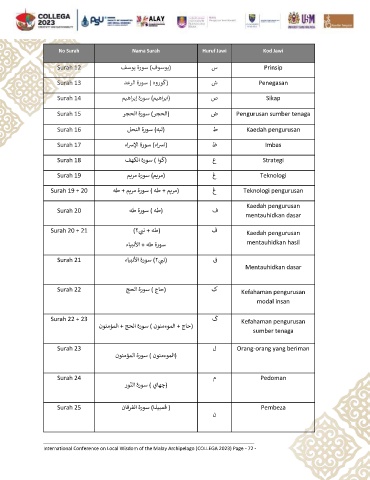 No Surah Nama Surah Huruf Jawi Kod Jawi