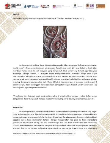 penerokaan kajian dalam bidang seni bina ukiran melayu. Kod jawi dapat membantu dalam memahami