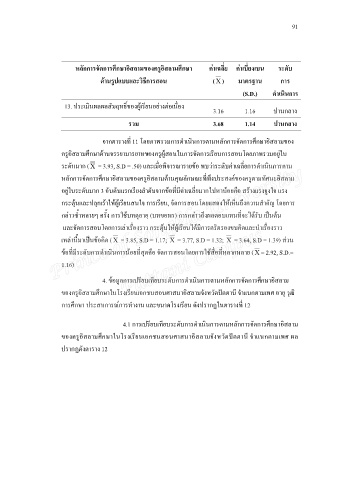 ขอที่มระดับการดําเนินการนอยที่สดคือ จัดการสอนโดยการใชสอที่หลากหลาย ( Χ= 2.92, S.D.=