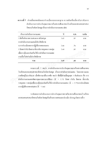 จากตารางที 7 พบว่า การดําเนนงานการประกันคุณภาพภายในสถานศึกษาของ