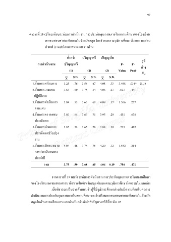 ตารางที 19 เปรยบเทยบระดับการดําเนนงานการประกันคณภาพภายในสถานศกษาของโรงเรยน