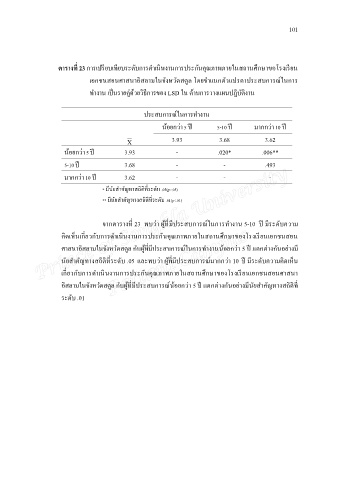 จากตารางท 23 พบว่า ผู้ทมประสบการณในการทํางาน 5-10 ป มระดับความ