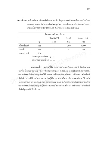 จากตารางท 25 พบว่า ผู้ทมประสบการณในการทํางาน 5-10 ป มระดับความ