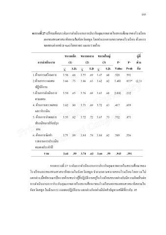แตกตาง เมื อพิจารณาเปนรายด้านพบว่า ผู้ทปฏิบัตงานอยูในโรงเรยนขนาดตางกันมีความคดเหนตอ