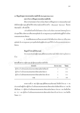 จากตารางท 28 พบว่าผู้ทรงคณวุฒทตอบแบบสัมภาษณ เชงลกม จํานวน 9 คน